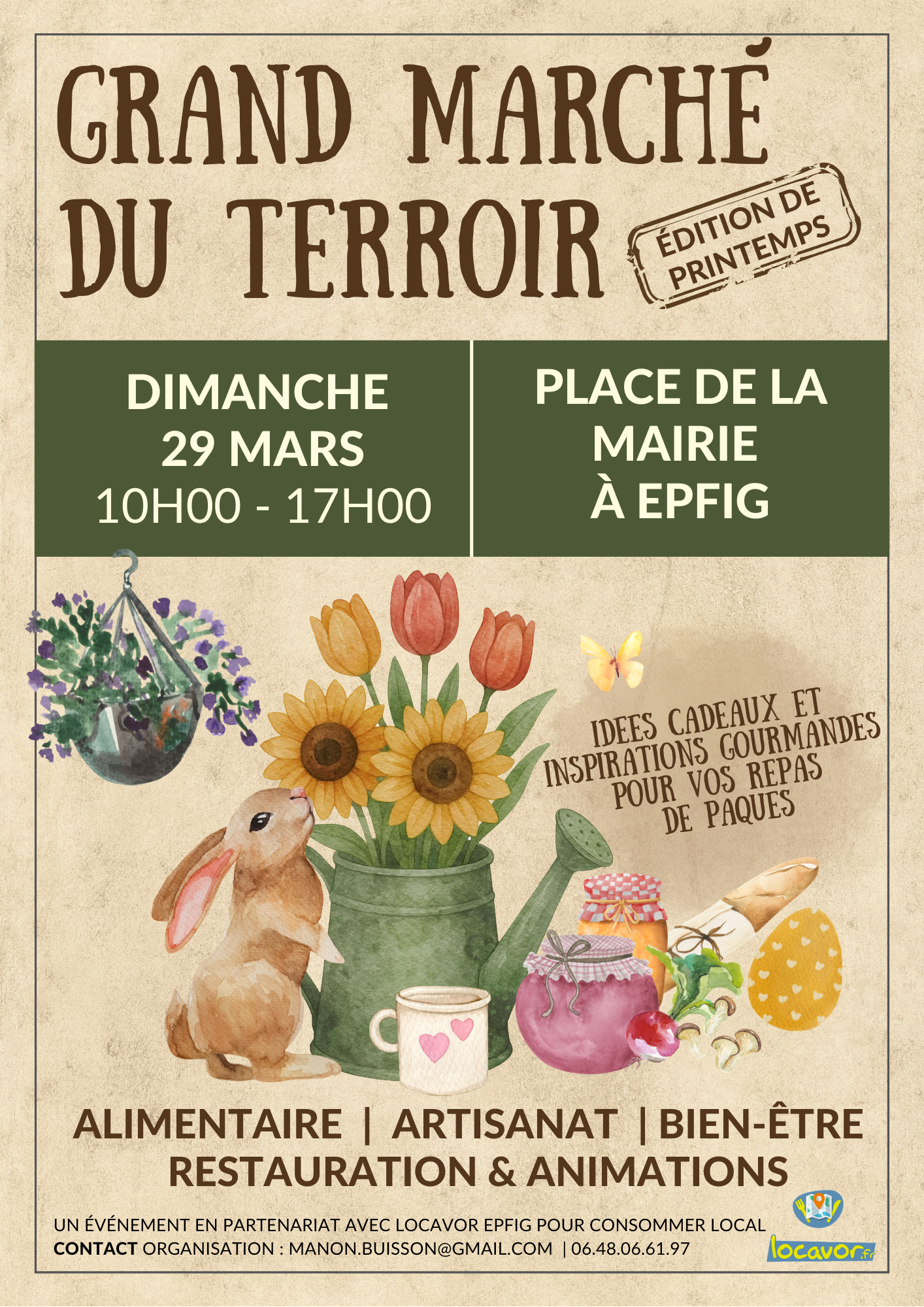 Voilà une nouvelle date à retenir dans vos agendas. Je serais présente le Dimanche 29 Mars à EPFIG (Alsace) pour un marché artisanal de Printemps. De nombreux exposants vous y attendent, idées cadeaux et gourmandises seront au rendez vous ! Alors n’hésitez pas, pour votre ballade dominicale à venir à ce beau petit marché!